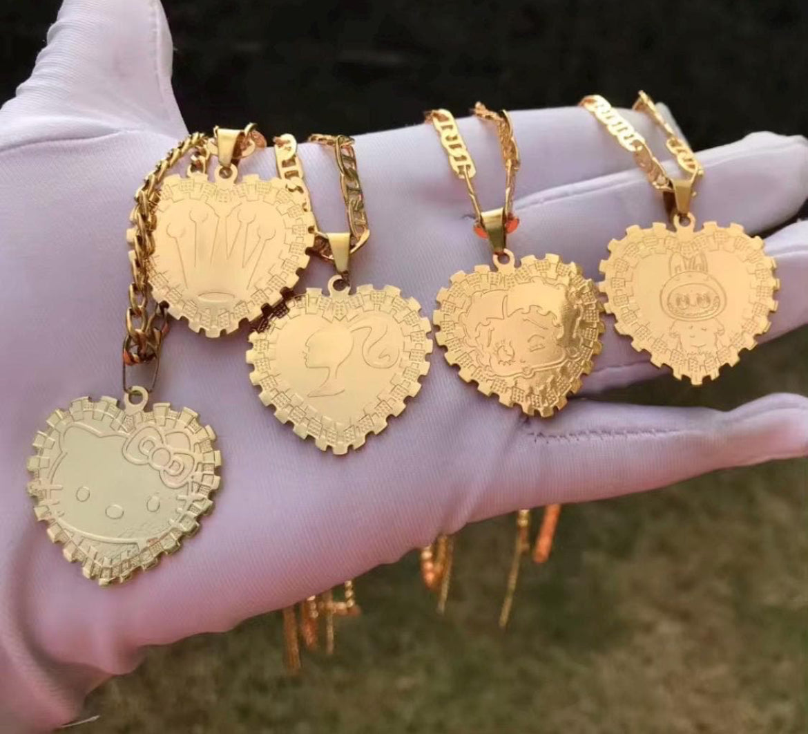 Rollie Heart Frame Stainless Steel 18k Gold Plated Cute Cartoon Character Necklace